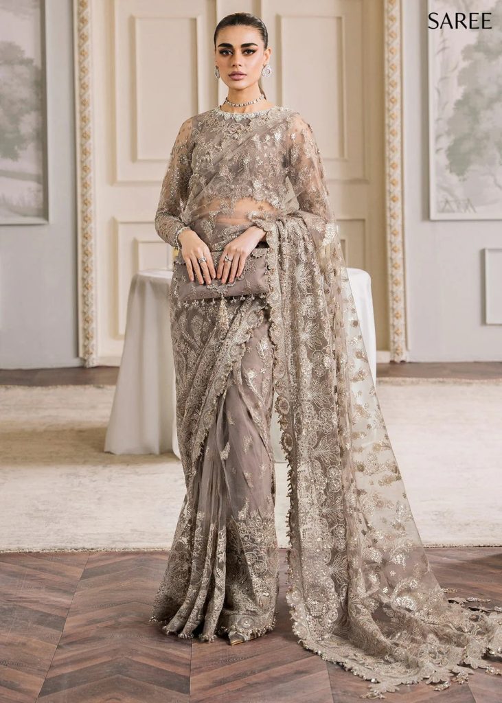 Enhance your wardrobe with our Chantelle Chiffon Saree, ideal for making a stylish statement. This saree features a soft, flowing fabric that drapes elegantly, offering a blend of sophistication and comfort. Perfect for both casual and formal events, its delicate shimmer and graceful design ensure you stand out effortlessly. Discover timeless beauty with our Chantelle Chiffon Saree.